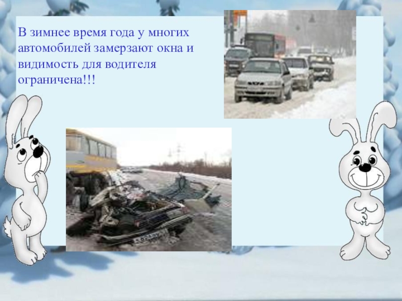 Слайд 57В зимнее время года у многих автомобилей замерзают окна и видимость
