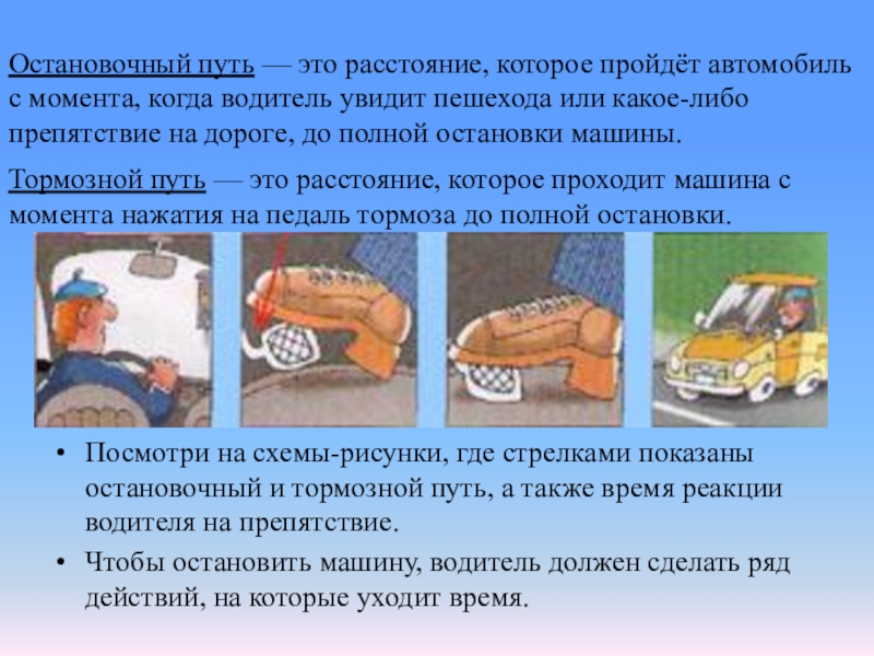 Чтобы остановить машину, водитель должен сделать ряд действий, на которые уходит время.
