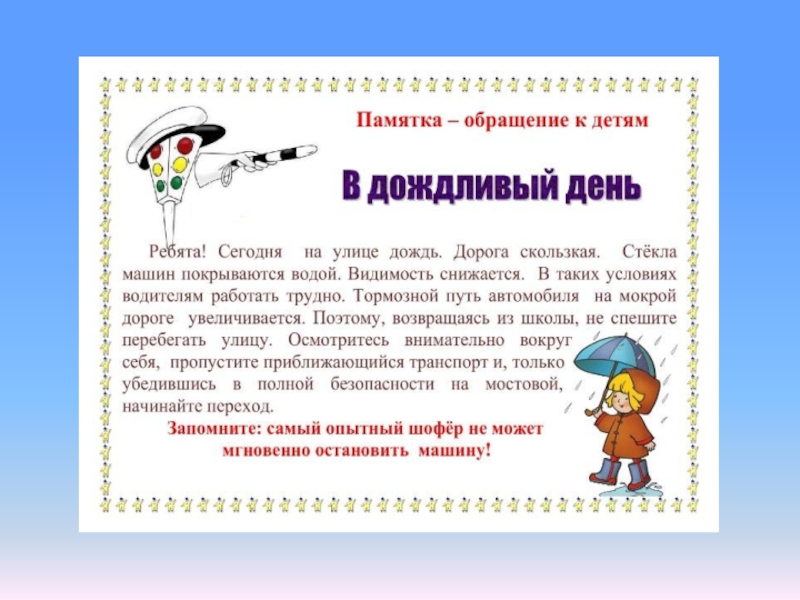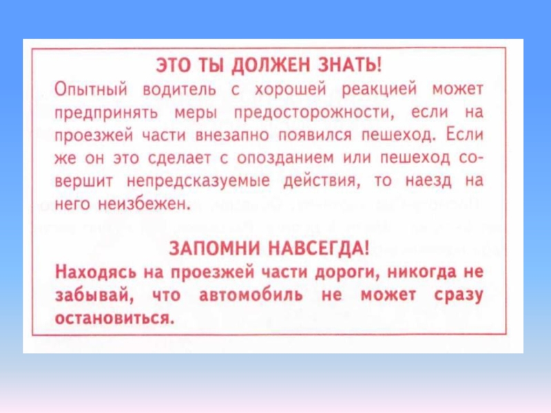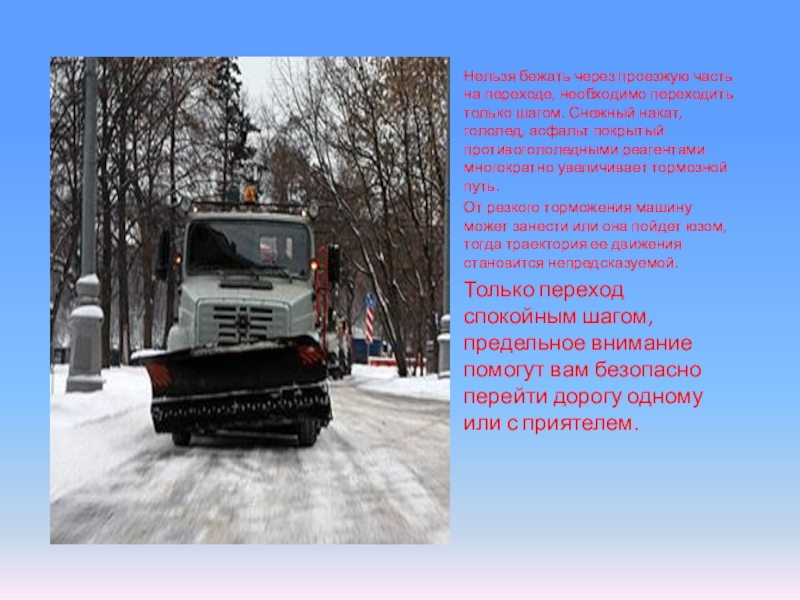 Помни, что транспортное средство останавливаясь у перехода движется по инерции.