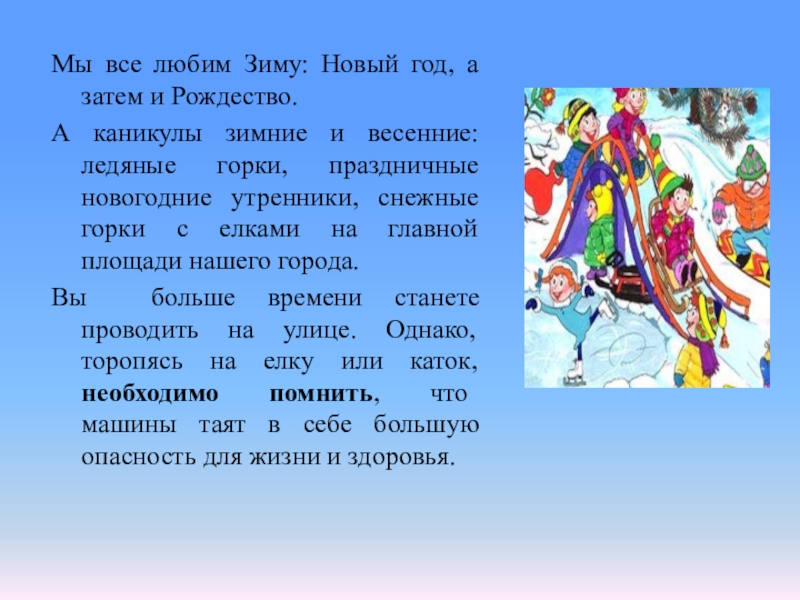 Слайд 4Мы все любим Зиму: Новый год, а затем и Рождество.