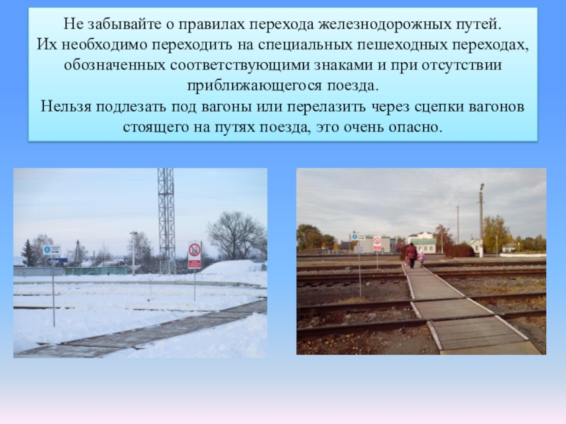 Слайд 35Не забывайте о правилах перехода железнодорожных путей.