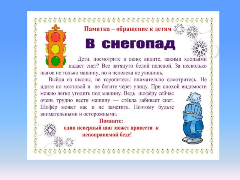 Помни: снежок, попавший в лобовое стекло едущего автомобиля, может стать причиной ДТП!
