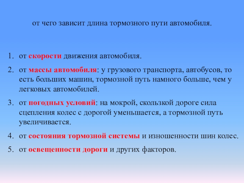 Слайд 43от чего зависит длина тормозного пути автомобиля.