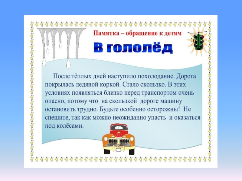Вы больше времени станете проводить на улице. Однако, торопясь на елку или каток, необходимо помнить, что машины таят в себе большую опасность для жизни и здоровья.
