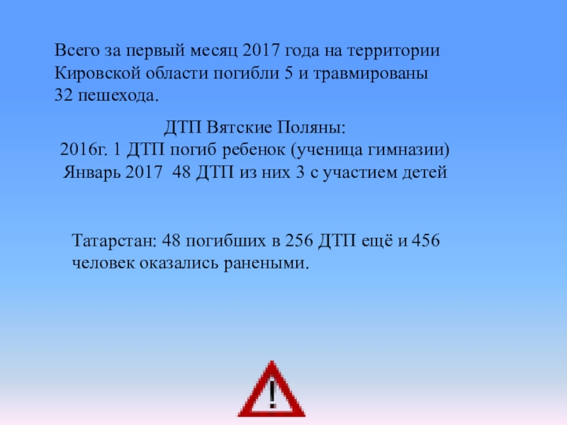 Всего за первый месяц 2017 года на территории Кировской области погибли 5 и травмированы 32 пешехода.