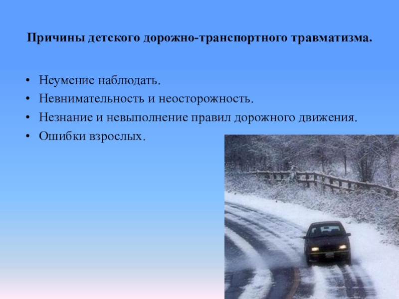 Слайд 10Причины детского дорожно-транспортного травматизма.