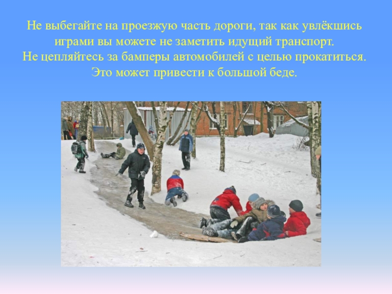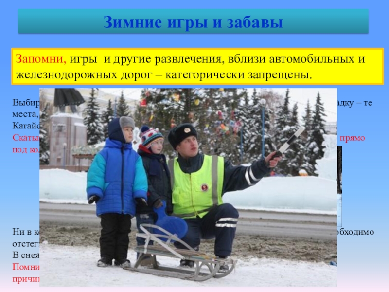 Объяснить детям, что игры и развлечения вблизи дороги зимой