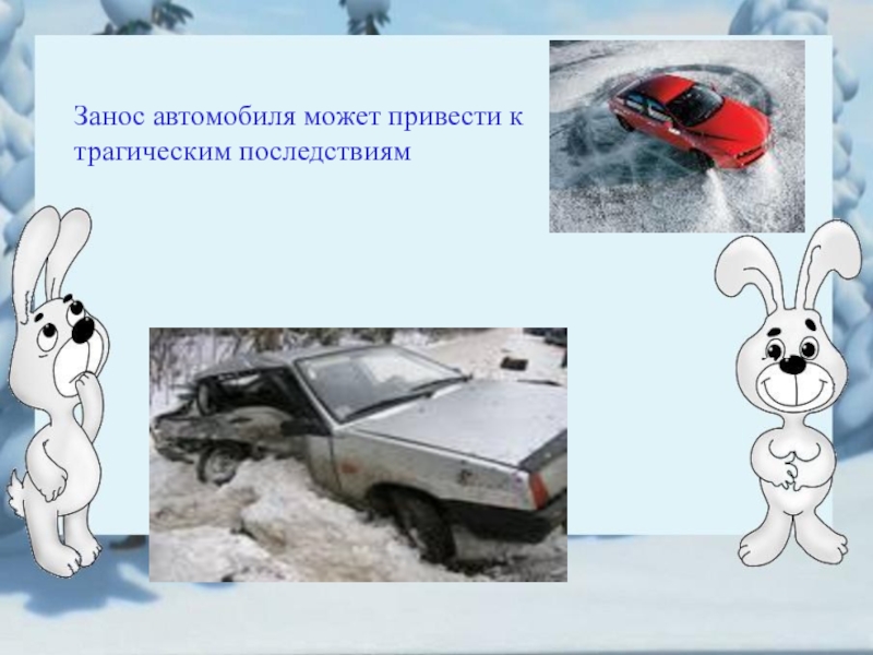 Слайд 56Занос автомобиля может привести к трагическим последствиям