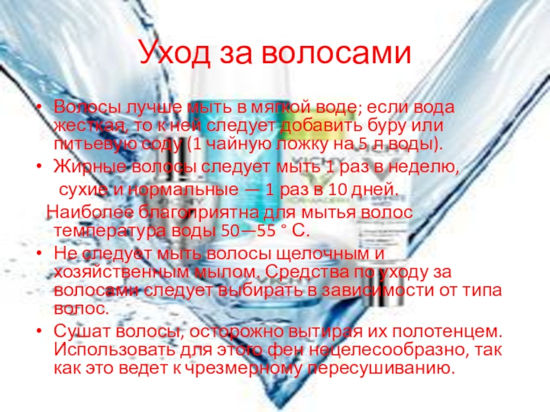Слайд 6Уход за волосами