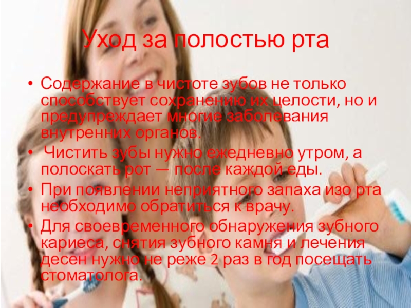 Слайд 7Уход за полостью рта