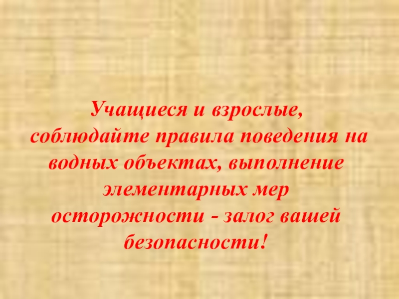 Учащиеся и взрослые, соблюдайте правила поведения на водных объектах, выполнение элементарных