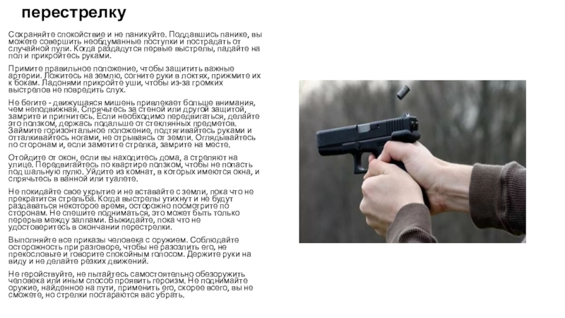 Слайд 5Во время перестрелки надо иметь в виду, что не менее опасен