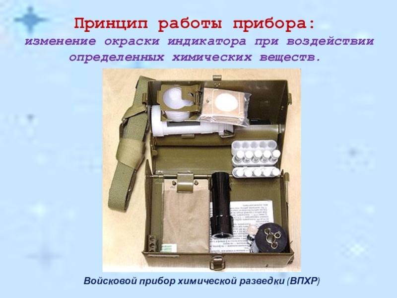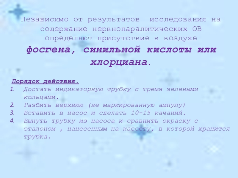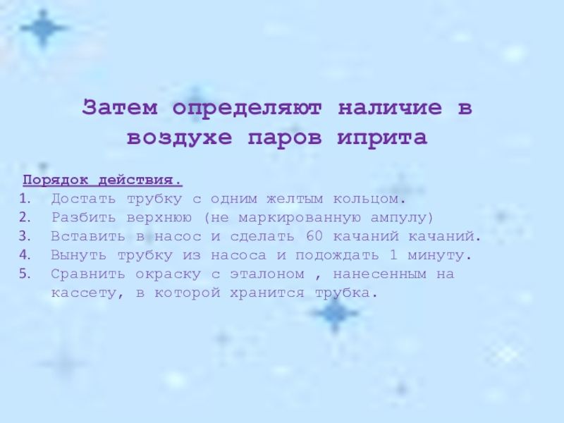 Слайд 24Затем определяют наличие в воздухе паров иприта
