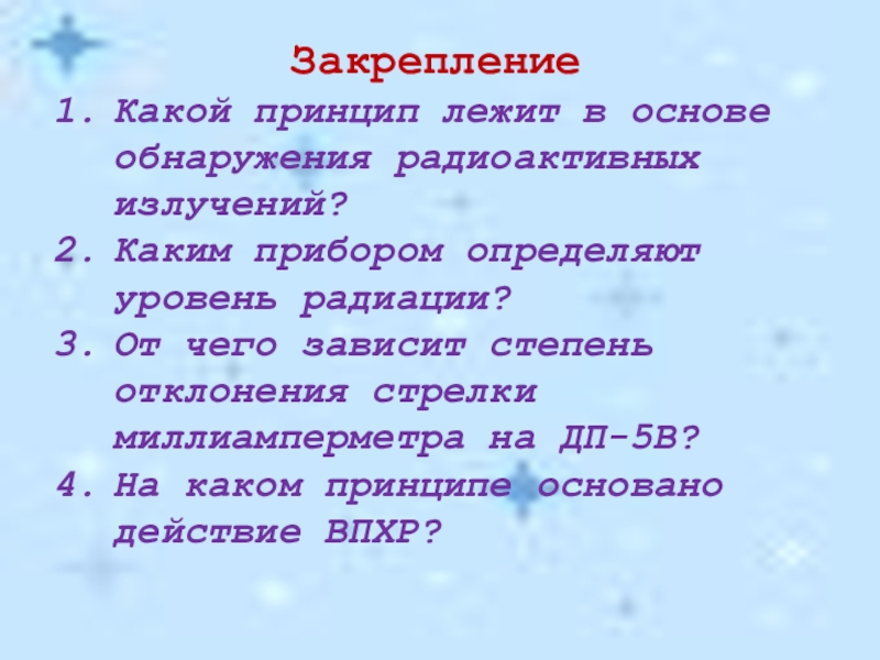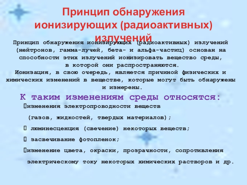 Принцип обнаружения ионизирующих (радиоактивных) излучений