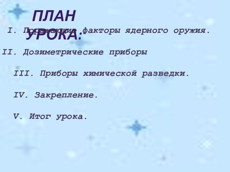 радиационной обстановке на местности, иметь представление о зараженности различных предметов, воды и продуктов питания.
