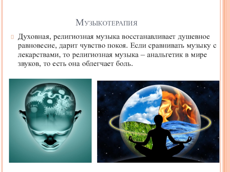 музыку с лекарствами, то религиозная музыка – анальгетик в мире звуков, то есть она облегчает боль.
