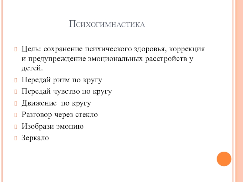 Цель: сохранение психического здоровья, коррекция и предупреждение эмоциональных расстройств у детей.