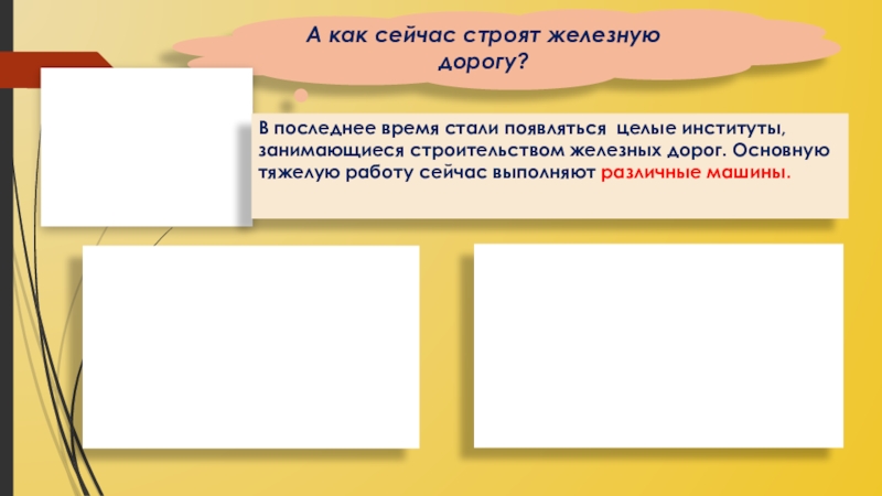 институты, занимающиеся строительством железных дорог. Основную тяжелую работу сейчас выполняют различные машины.