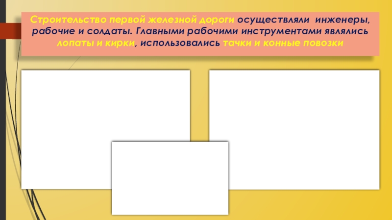 Слайд 5Строительство первой железной дороги осуществляли инженеры, рабочие и солдаты. Главными рабочими