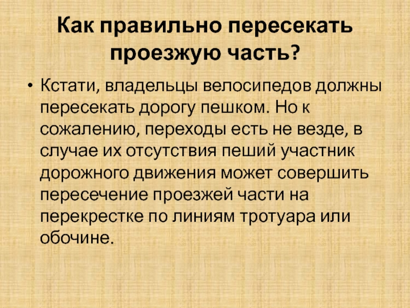 Слайд 27В том случае, если отсутствуют все вышеперечисленные условия, то перейти проезжую