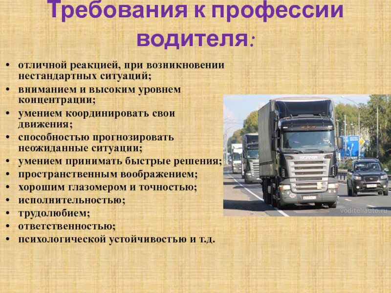 Слайд 5 Профессия водитель является актуальной в любое время. Даже сегодня,