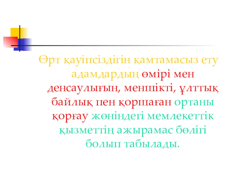 Слайд 3Өрт қауiпсiздiгiн қамтамасыз ету адамдардың өмiрi мен денсаулығын, меншiктi, ұлттық байлық