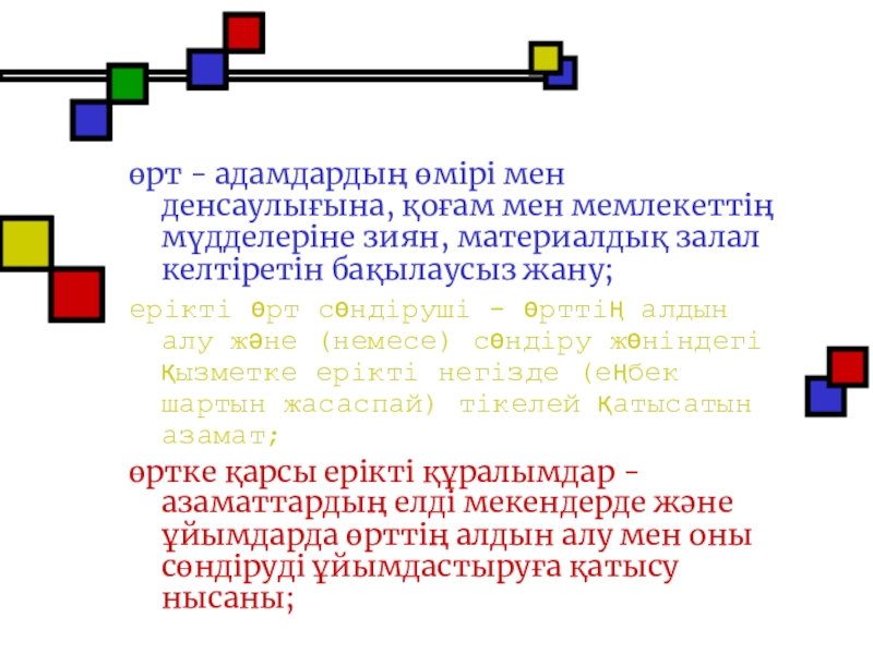 Слайд 7өрт - адамдардың өмірі мен денсаулығына, қоғам мен мемлекеттің мүдделеріне зиян,