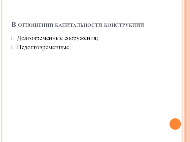 В отношении капитальности конструкцийДолговременные сооружения;Недолговременные