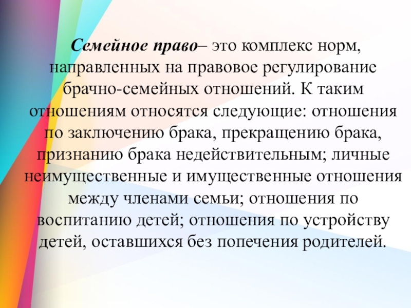 Слайд 2 Семейное право– это комплекс норм, направленных на правовое регулирование брачно-семейных отношений.