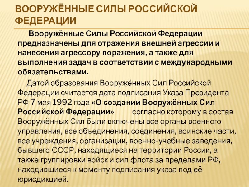 Вооружённые Силы Российской Федерации предназначены для отражения