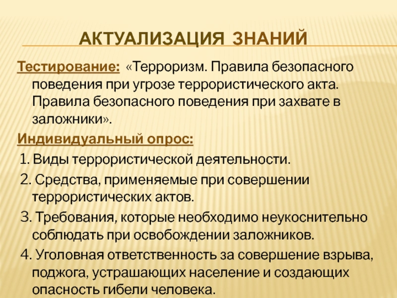Тестирование: «Терроризм. Правила безопасного поведения при угрозе террористического акта. Правила безопасного поведения при захвате в заложники».