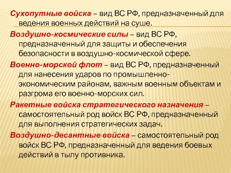 Слайд 13Сухопутные войска – вид ВС РФ, предназначенный для ведения военных действий
