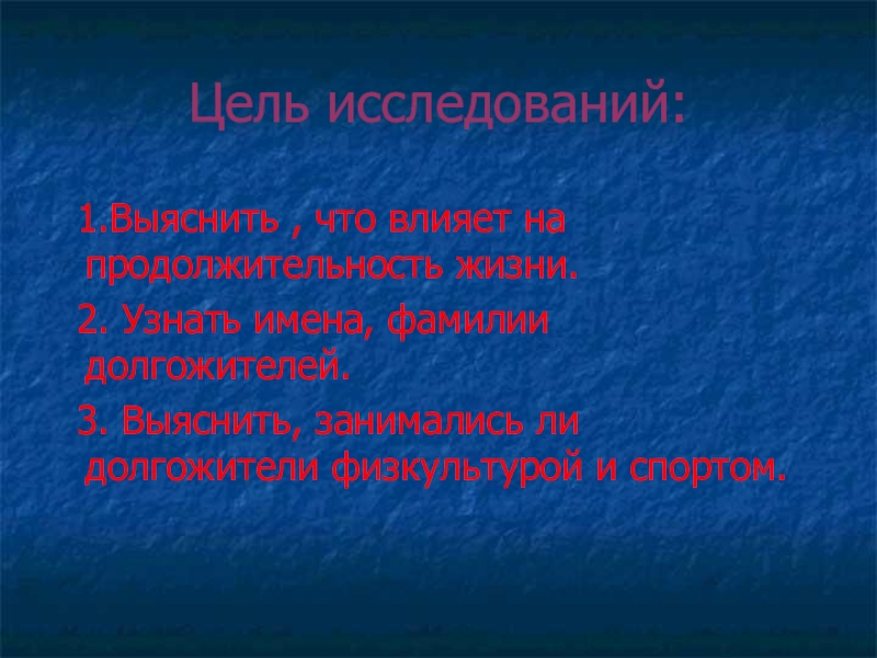 3. Выяснить, занимались ли долгожители физкультурой и спортом.