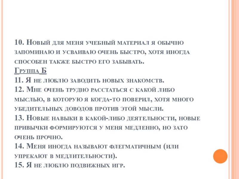 14. Меня иногда называют флегматичным (или упрекают в медлительности).