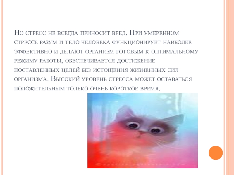 Слайд 11Но стресс не всегда приносит вред. При умеренном стрессе разум и