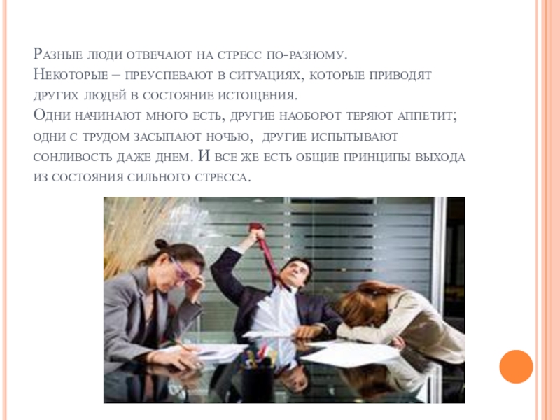 Слайд 13Разные люди отвечают на стресс по-разному.