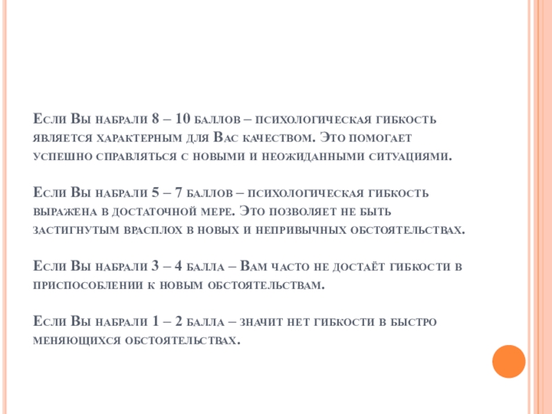 Слайд 19Если Вы набрали 8 – 10 баллов – психологическая гибкость является
