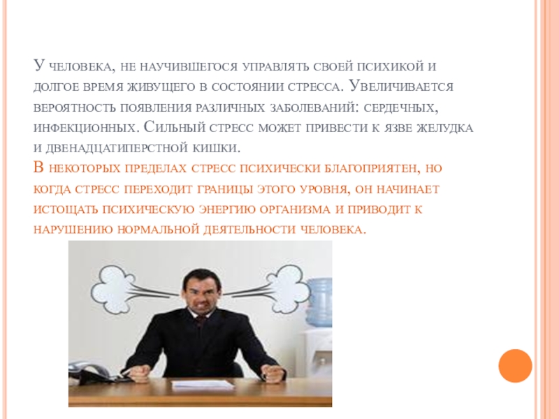 Слайд 12У человека, не научившегося управлять своей психикой и долгое время живущего