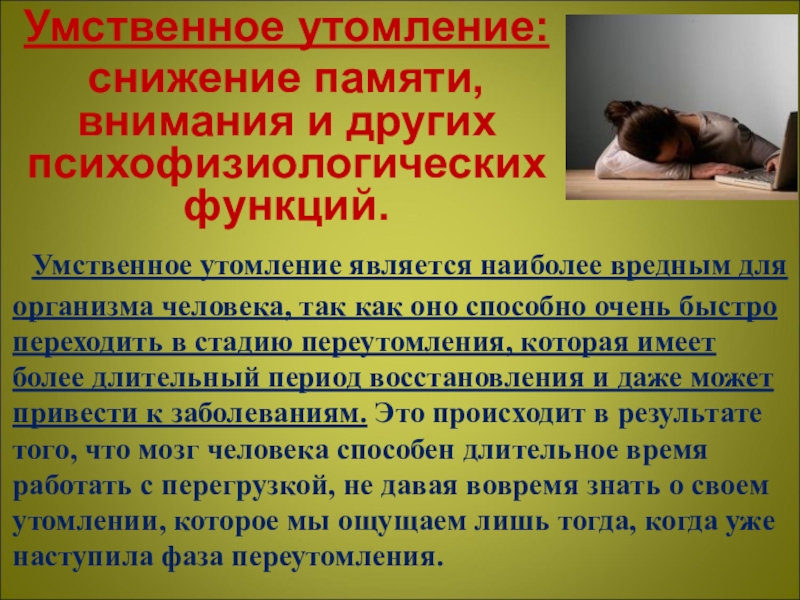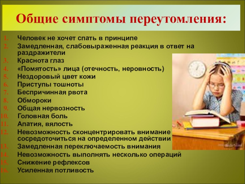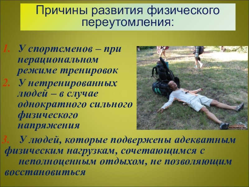 физическим нагрузкам, сочетающимся с неполноценным отдыхом, не позволяющим