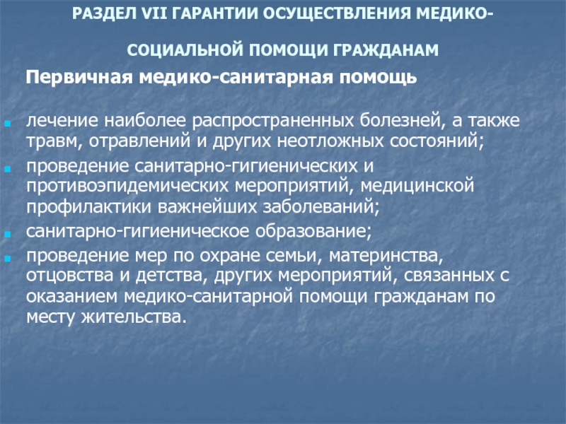 Слайд 22РАЗДЕЛ VII ГАРАНТИИ ОСУЩЕСТВЛЕНИЯ МЕДИКО-СОЦИАЛЬНОЙ ПОМОЩИ ГРАЖДАНАМ