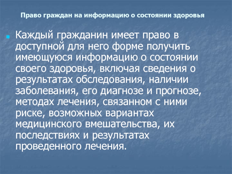 Слайд 21Право граждан на информацию о состоянии здоровья