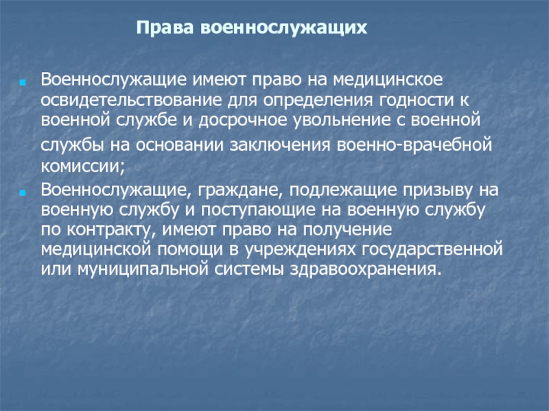 Военнослужащие имеют право на медицинское освидетельствование для определения годности к