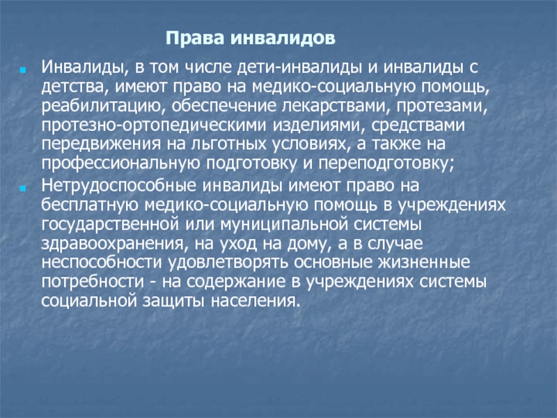 Инвалиды, в том числе дети-инвалиды и инвалиды с детства, имеют