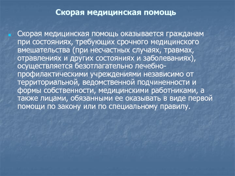 Скорая медицинская помощь оказывается гражданам при состояниях, требующих срочного