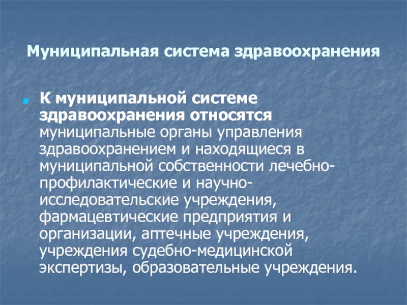 К муниципальной системе здравоохранения относятся муниципальные органы управления