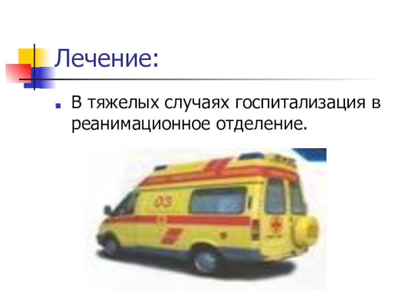 Лечение:В тяжелых случаях госпитализация в реанимационное отделение.