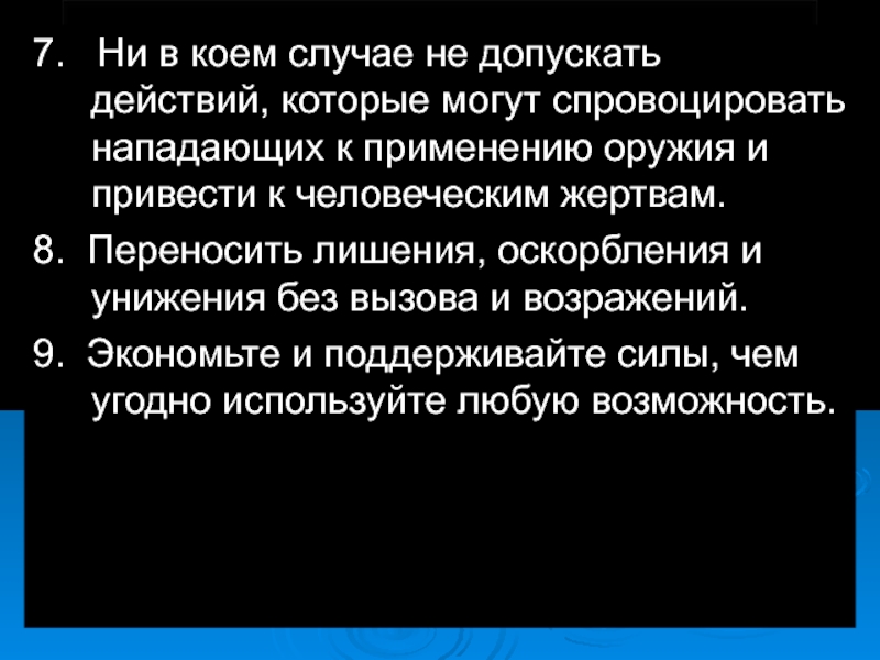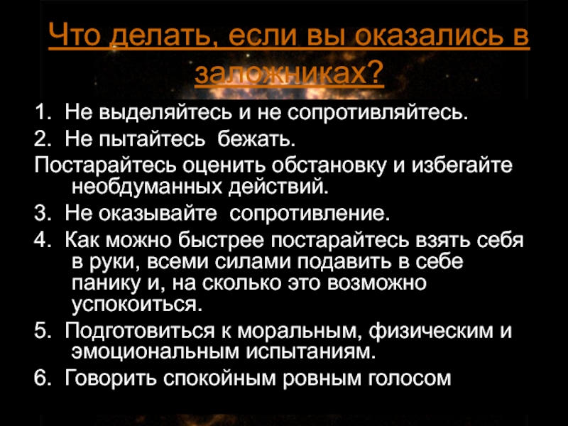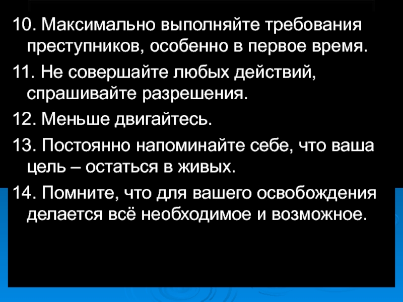 Слайд 2610. Максимально выполняйте требования преступников, особенно в первое время.