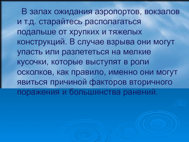 Слайд 21 В залах ожидания аэропортов, вокзалов и т.д. старайтесь
