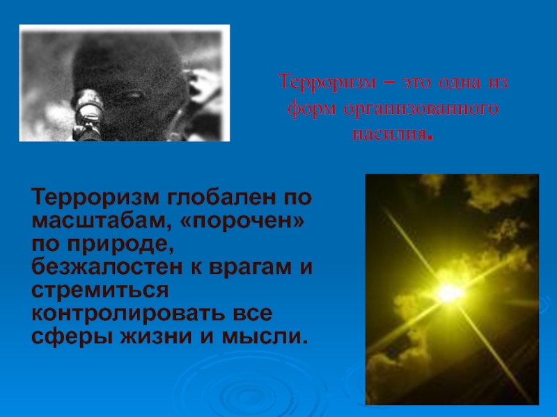 Слайд 2Терроризм – это одна из форм организованного насилия.