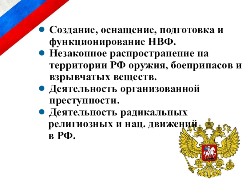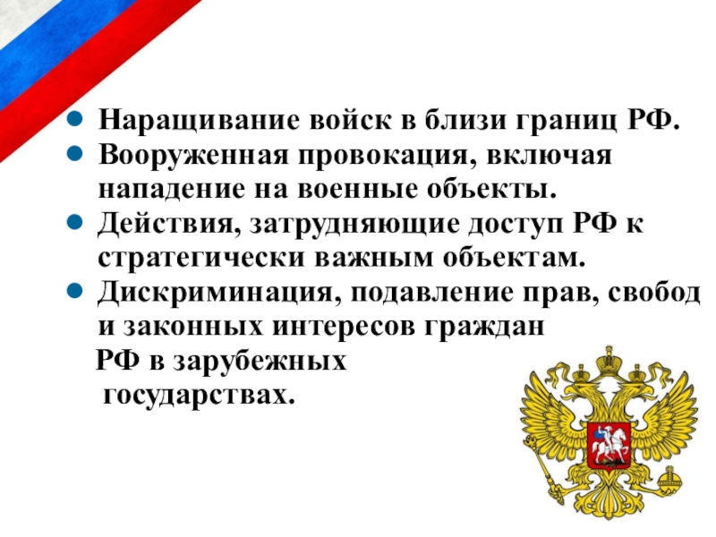 нанесения ущерба конституционным правам, свободам, суверенитету, целостности, обороне и безопасности государства.
